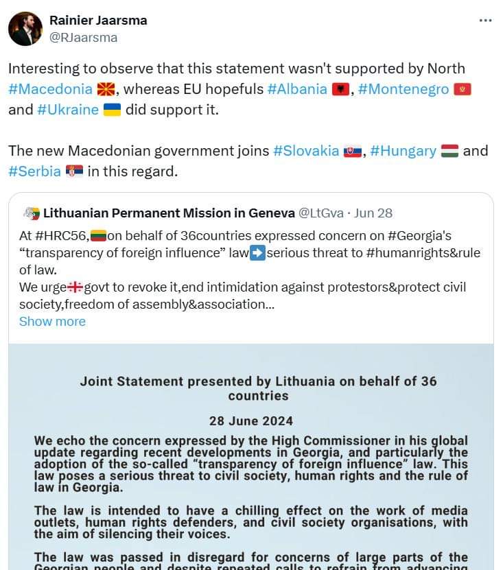 Sipas tij, për të parën herë, Maqedonia nën drejtimin VLEN-VMRO rreshtohet krah. Serbisë, Hungarisë, Slovakisë.